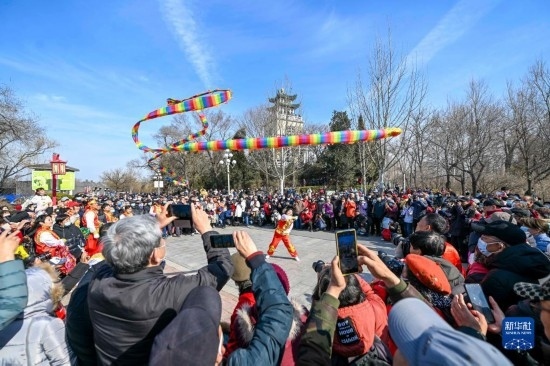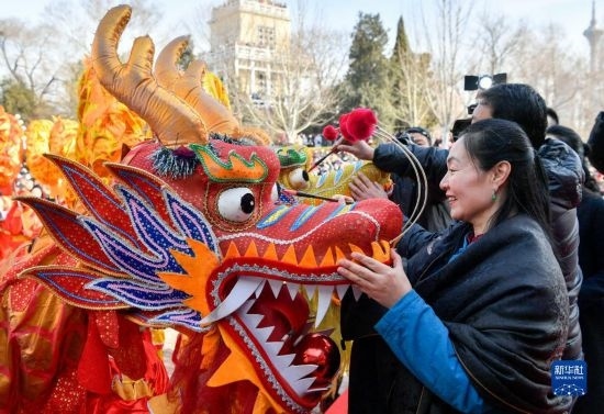當(dāng)日是農(nóng)歷二月初二,又稱“春龍節(jié)”?!扒帻埆I(xiàn)瑞 玉兔呈祥”第四屆舞龍大會在天津市水上公園舉行,眾多市民群眾前來觀看舞龍、漢沽飛镲、空竹舞龍等特色民俗活動,感受傳統(tǒng)文化的魅力。