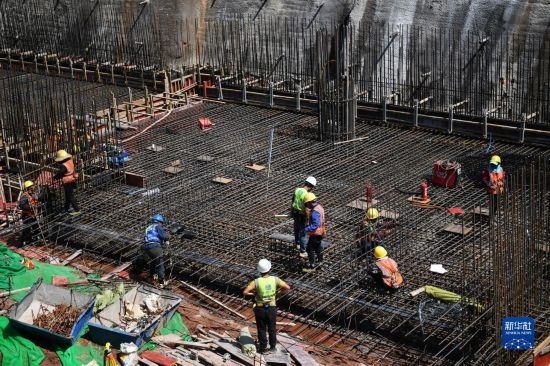 5月1日,中鐵建工集團工人在貴州貴安新區(qū)貴安站擴建項目工地施工。