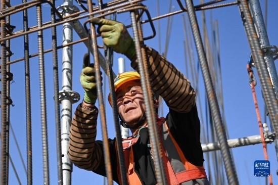 5月1日,工人在中建二局陜西分公司高鐵新城項目工地施工。