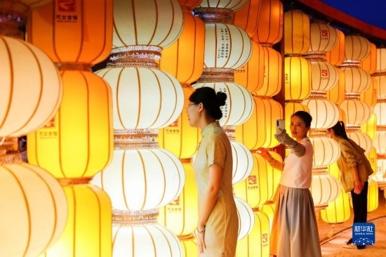 當(dāng)日,位于甘肅省蘭州市西固區(qū)黃河岸邊的河口古鎮(zhèn)“黃河燈展”正式亮燈。此次燈展以“河口耀千年·絲路映萬古”為主題,各類燈組交相輝映,吸引眾多游客前來游覽。此次燈展將持續(xù)到10月底。燈展活動期間,河口古鎮(zhèn)還將舉辦盛裝巡游等活動,為游客帶來豐富的參觀體驗。