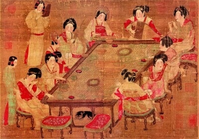 隨著茶在各個階層中的逐漸流行,到了隋唐時期,人們更加注重飲茶的儀式感。唐代陸羽所著《茶經(jīng)》的問世,更是將茶文化推向空前繁榮的發(fā)展時期,煎茶成為當(dāng)時主要的飲茶方式。從《唐人宮樂圖》這幅經(jīng)典茶畫中可以看到雍容華貴的仕女和精美華麗的宮廷家具,富麗的設(shè)色更是將唐代審美展現(xiàn)得淋漓盡致。畫中,宮女們分坐于雕飾精美的月牙凳上,圍著寬大的長案或在吹篥,或彈琵琶,案上擺放著精致的茶盞,人們沉浸在美妙的樂音中享受著煎茶的美好時光。宮廷茶宴成為唐代宮廷休閑與文化生活的一部分,亦是唐代茶事活動的一個縮影,相應(yīng)的茶家具種類和形式也逐漸豐富起來。此時用于飲茶的長案與月牙凳可以滿足多人共同參與,足見飲茶已經(jīng)具有了一定的社交屬性。