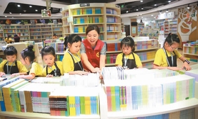 7月18日,來自重慶市沙坪壩區(qū)的20名小學(xué)生走進(jìn)重慶新華書店沙坪壩書城,化身“小小圖書管理員”,參加勞動(dòng)職業(yè)體驗(yàn)活動(dòng)。趙杰昌攝(人民圖片)