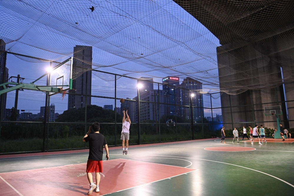 這是市民在錢江世紀城體育公園打籃球(2022年9月20日攝)。新華社記者 黃宗治 攝