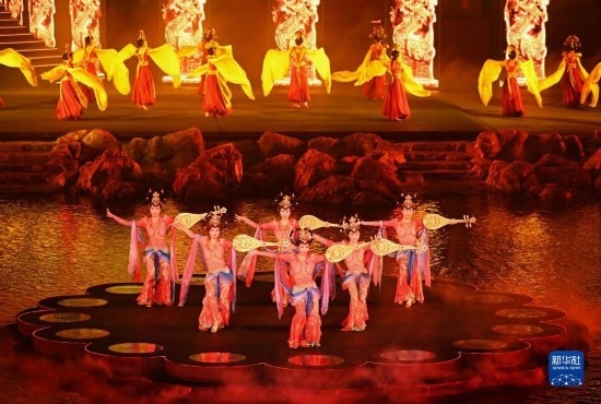 8月26日,演員在北戴河碧螺塔酒吧公園為游客表演大型實景秀《浪淘沙·北戴河》。