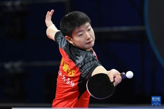 12月22日,深圳大學隊選手孫穎莎在女團半決賽中回球。她以3比0戰(zhàn)勝華東理工大學隊選手趙尚。最終深圳大學隊以總比分3比1戰(zhàn)勝華東理工大學隊。新華社記者 梁旭 攝