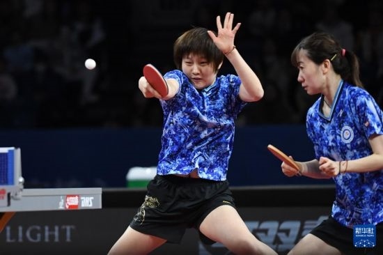 12月22日,深圳大學隊組合蒯曼/陳夢(右)在女團半決賽中。她們以3比0戰(zhàn)勝華東理工大學隊組合趙尚/李雅可。最終深圳大學隊以總比分3比1戰(zhàn)勝華東理工大學隊。新華社記者 梁旭 攝