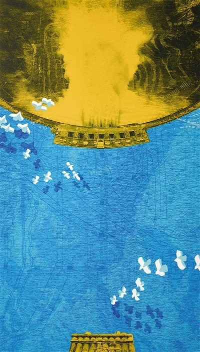 新時(shí)代長(zhǎng)江氣象萬(wàn)千。在重慶市文化和旅游發(fā)展委員會(huì)、重慶市文學(xué)藝術(shù)界聯(lián)合會(huì)等單位主辦的“2022同源·同向——長(zhǎng)江流域十三省市自治區(qū)美術(shù)作品邀請(qǐng)展”上,龐茂琨油畫(huà)《輝耀九龍》、徐君華粉畫(huà)《浦江之夢(mèng)》等作品,以充滿詩(shī)意的語(yǔ)言展現(xiàn)了日新月異的城鄉(xiāng)面貌與豐富多彩的現(xiàn)實(shí)生活。近年來(lái),一批重大工程的實(shí)施,為百姓生活帶來(lái)便利,使長(zhǎng)江流域涌動(dòng)活力。一些美術(shù)工作者充分發(fā)揮視覺(jué)藝術(shù)的力量感,反映長(zhǎng)江流域建設(shè)成就。比如,賀思恩版畫(huà)《蓄勢(shì)——破譯雅礱密碼》依托絲網(wǎng)版畫(huà)色彩表現(xiàn)力較強(qiáng)的藝術(shù)特色,以俯瞰視角,展現(xiàn)了長(zhǎng)江流域水電站的時(shí)代風(fēng)采。