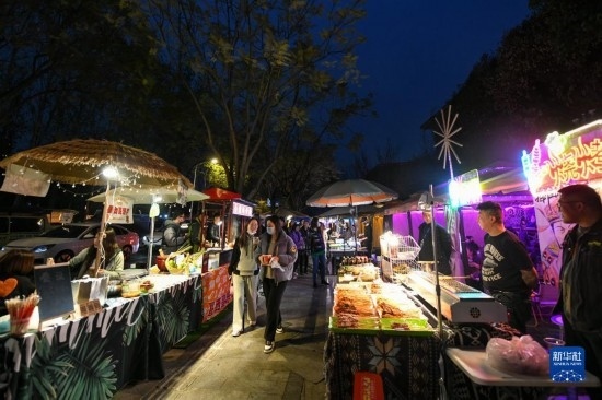 成都:“夜經(jīng)濟(jì)”點(diǎn)亮城市活力 這是2月28日在四川省成都市錦江區(qū)拍攝的三色路夜市。近......