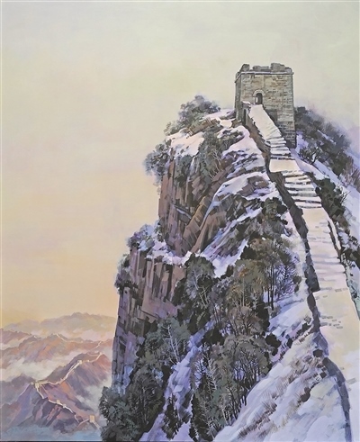 長城歷經(jīng)風(fēng)霜雨雪,形成了大氣蒼茫的自然面貌。呈現(xiàn)長城歷史、傳承長城文化的另一種方式,是發(fā)揮美術(shù)在塑造藝術(shù)形象方面的獨特優(yōu)勢,通過豐富多變的視角和繪畫語言展現(xiàn)長城的滄桑之美與雄渾氣魄。在山西省文化和旅游廳、陽泉市人民政府主辦的“2023印象長城主題文化交流展”上,劉伯務(wù)油畫《屹立千秋》以夕陽下的嘉峪關(guān)長城為表現(xiàn)對象,暖色調(diào)的城墻與遠處冷色調(diào)的雪山形成對比,突顯“天下第一雄關(guān)”的瑰麗奇?zhèn)ァ@钍懒嶂袊嫛豆湃铩芬匀?lián)畫形式展現(xiàn)夯土長城歷經(jīng)風(fēng)雨依然昂首屹立的景象,并通過色彩變幻反映滄海桑田的歷史變遷。在青海省文化和旅游廳主辦的“長城長 河湟美”青海明長城文化主題采風(fēng)創(chuàng)作系列活動中,美術(shù)工作者多次前往長城沿線體驗生活,抒寫長城古韻,像汪珍系列版畫《長城長 河湟美》等作品,以不同視角、立意、造型,藝術(shù)地表現(xiàn)長城上的時間印記,展示了長城深沉悠遠的詩意與韻味。