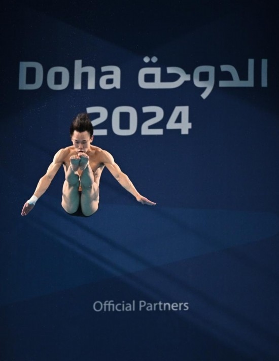 2月10日,中國(guó)選手楊昊在男子10米臺(tái)決賽中。新華社記者 薛宇舸 攝