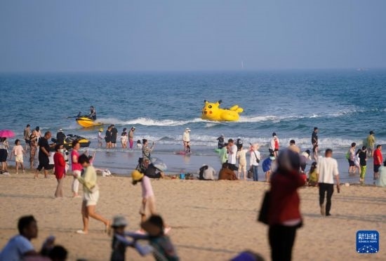 2月19日,游客在海南萬寧石梅灣海灘游玩。