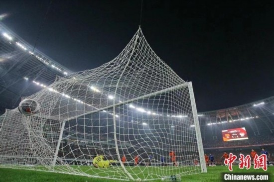 3月26日晚,在天津舉行的2026年國際足聯(lián)世界杯亞洲區(qū)預選賽36強賽C組比賽中,中國隊主場4比1戰(zhàn)勝新加坡隊。圖為中國隊球員費南多在比賽中主罰點球破門。佟郁 攝