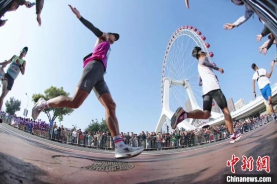 2023年10月,天津馬拉松時隔17年后重返市區(qū)進行比賽,共吸引了29個國家和地區(qū)約9.5萬人參與報名。途經7個行政區(qū)的線路串聯(lián)起天津五大道、民園廣場、世紀鐘、天津之眼等諸多天津城市地標型建筑和知名景點,“驚艷”著來自世界各地的參賽選手。