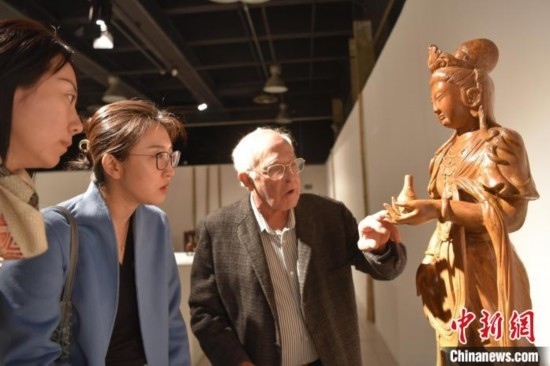 萊特已至耄耋之年,坐在輪椅上,仍思維敏捷金句頻出?!拔业谝淮稳サ缴衩氐闹袊氐桨臀骱?,內心感到無比充實、收獲滿滿?!比R特領著中新社記者參觀藏品,鉤沉往事,“這些藏品承載了我在這個古老國度漫游時的回憶和個人感受”。