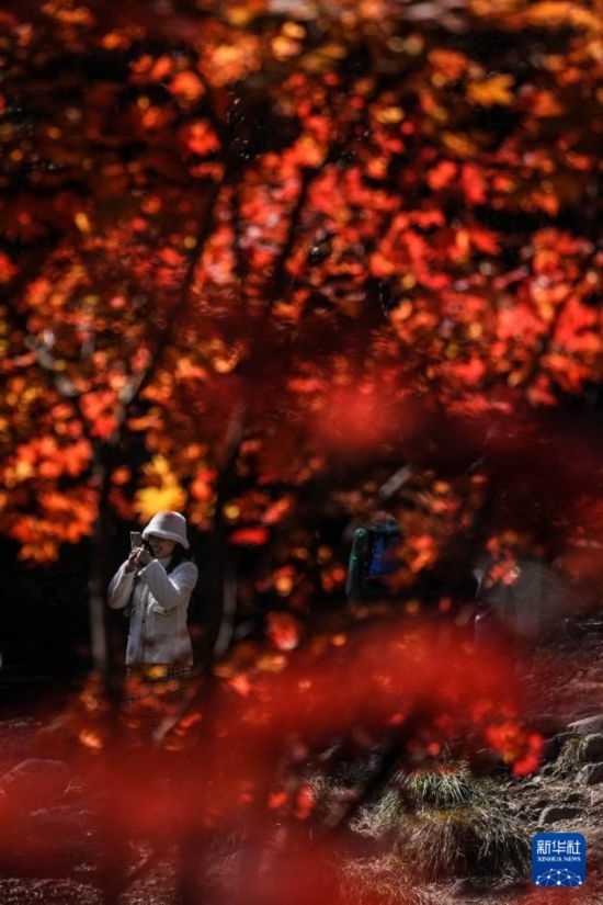 10月7日,遼寧本溪老邊溝風(fēng)景區(qū)內(nèi)的楓樹正值最佳觀賞期,很多游客來(lái)到這里觀賞金秋“楓”景。