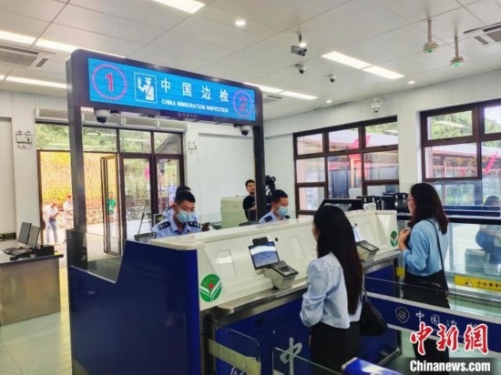 圖為游客正在辦理查驗(yàn)手續(xù)。中新網(wǎng)記者 黃艷梅 攝
