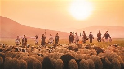 | 落日時(shí)分,《燃燒的月亮》女嘉賓們集體趕羊回羊圈。出品方供圖 |