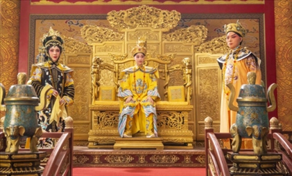 12月8日,游客在官渡古鎮(zhèn)“古渡梨園”體驗(yàn)滇劇表演。