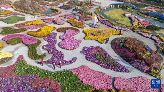 2月21日,游客在昆明市海洪莫奈花園參觀、游覽(無人機照片)。