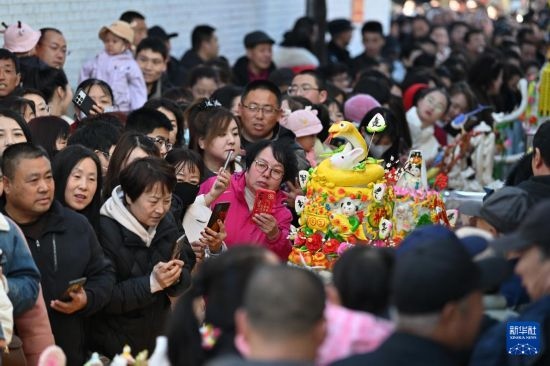 當日是農(nóng)歷二月十九,每年農(nóng)歷這一天,呂梁山區(qū)的山西省嵐縣嵐城鎮(zhèn)的鄉(xiāng)親們都會將精心制作的面塑擺上街頭進行展示,形成一條百米長的“面塑長河”。這些面塑作品造型各異、精巧絕倫,寄托了人們對美好生活的期盼。