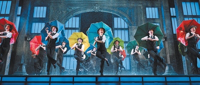 1952年,美國好萊塢經(jīng)典歌舞電影《雨中曲》上映,成為世界電影史上的不朽佳作。1983年,改編自電影的同名音樂劇在英國倫敦西區(qū)首演,并在此后的10余年間獲得諸多獎(jiǎng)項(xiàng)。2012年6月末的一天,我坐在倫敦皇宮劇院第一排,整晚在《雨中曲》水樣的浪漫氛圍中旋轉(zhuǎn)。2025年初春,這部音樂劇來到北京,最迷人的記憶依然是結(jié)尾處將觀眾“浸沒”的那場(chǎng)大雨。