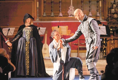 “往前走”的柯軍2016年和英國藝術(shù)家共同創(chuàng)作上演了湯顯祖和莎士比亞的“湯莎會”。中國昆曲演員和英國莎劇演員以中英雙語聯(lián)袂出演中英版《邯鄲夢》,這在昆曲和莎劇歷史上都是第一次,將原劇中四折最具代表性的段落作為主體,與《麥克白》《李爾王》《雅典的泰門》等莎士比亞經(jīng)典作品中的片段穿插交替,形成一種超時(shí)空的情境融合和人物體驗(yàn)的中西創(chuàng)新表達(dá)。