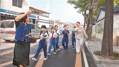 2024年10月,我來到國榮鄉(xiāng)聯(lián)合小學,與當?shù)匦W生一起,坐在秋日的暖陽下,上了一堂遺產(chǎn)教育課。作為“樓上村遺產(chǎn)教育”的組成部分,這個課程從2022年春季開始,每周開課兩次。當天的教室里,坐滿了校內(nèi)1至6年級的學生,校長、老師以及天津工業(yè)大學前來支教的2名青年教師也加入進來。剛剛從復旦大學畢業(yè)的全軼先博士擔任了線上老師,她曾在樓上村工作了兩年,進行長期駐地調(diào)研。她從二十四節(jié)氣講起,引出國家級非物質(zhì)文化遺產(chǎn)“石阡說春”的民俗文化。這個課程另一個吸引我的“亮點”,是隨后進行的課外實踐部分。小學生們非常認真地穿起講解服裝,在青年老師的帶領(lǐng)下組成講解隊,激動而略顯緊張地復習講稿,站在樓上村的一處處文化遺存前,等待為游客講述戲樓、梓潼宮、養(yǎng)正書院、天福古井的故事……