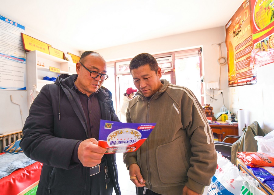 農資經(jīng)銷商向種植大戶介紹種子品種。(攝影:楊鑫)