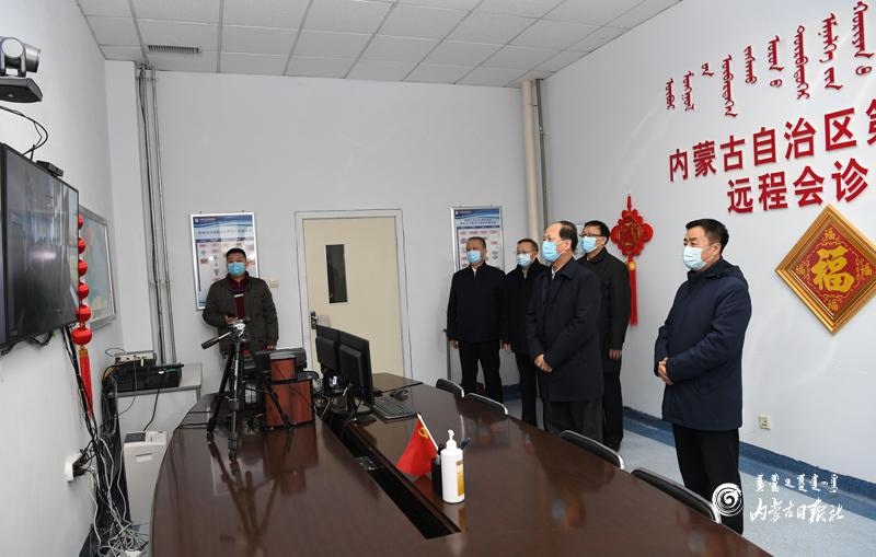 2月11日,自治區(qū)黨委書記、人大常委會(huì)主任石泰峰來(lái)到內(nèi)蒙古第四醫(yī)院,檢查疫情防控和患者救治情況,并與一線醫(yī)務(wù)工作者視頻連線,向他們致以新春的祝福。 內(nèi)蒙古日?qǐng)?bào)社融媒體記者 袁永紅 攝