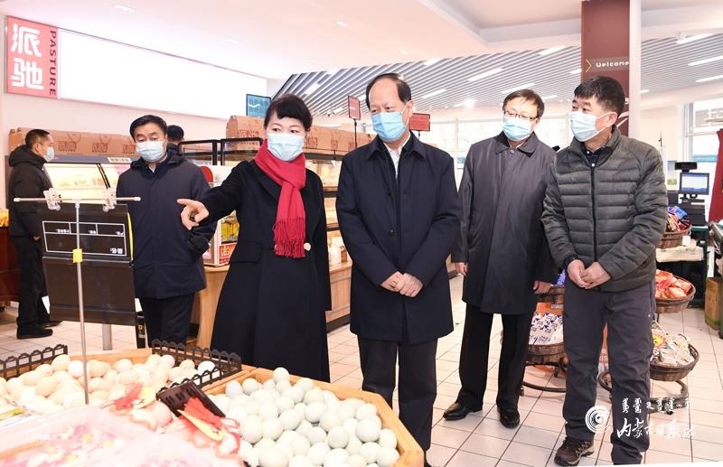2月11日,自治區(qū)黨委書記、人大常委會(huì)主任石泰峰隨機(jī)走訪便民超市,詳細(xì)了解春節(jié)期間市場(chǎng)供應(yīng)保障和疫情防控情況。 內(nèi)蒙古日?qǐng)?bào)社融媒體記者 袁永紅 攝