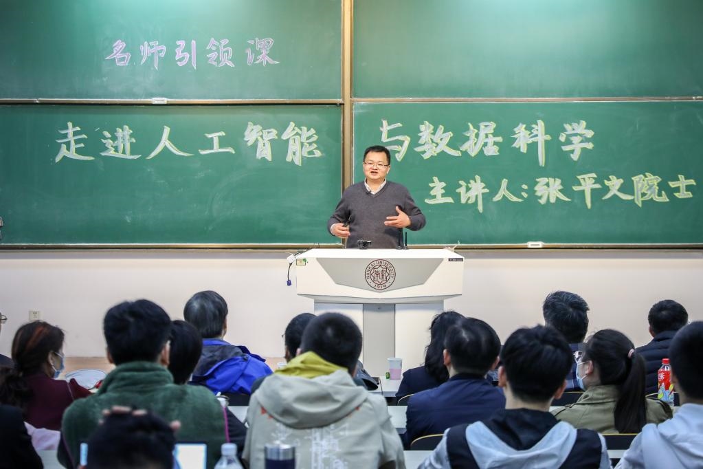 中國科學院院士張平文為南開學子講授“名師引領(lǐng)”通識課之“走進人工智能與數(shù)據(jù)科學”。(南開大學供圖)