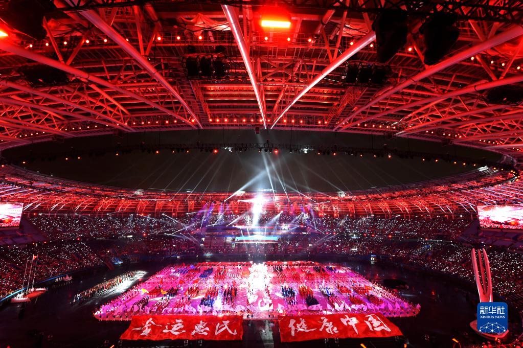 第十三屆全國(guó)運(yùn)動(dòng)會(huì)開(kāi)幕式在天津奧林匹克中心體育場(chǎng)舉行(2017年8月27日攝)。新華社發(fā)(白禹 攝)